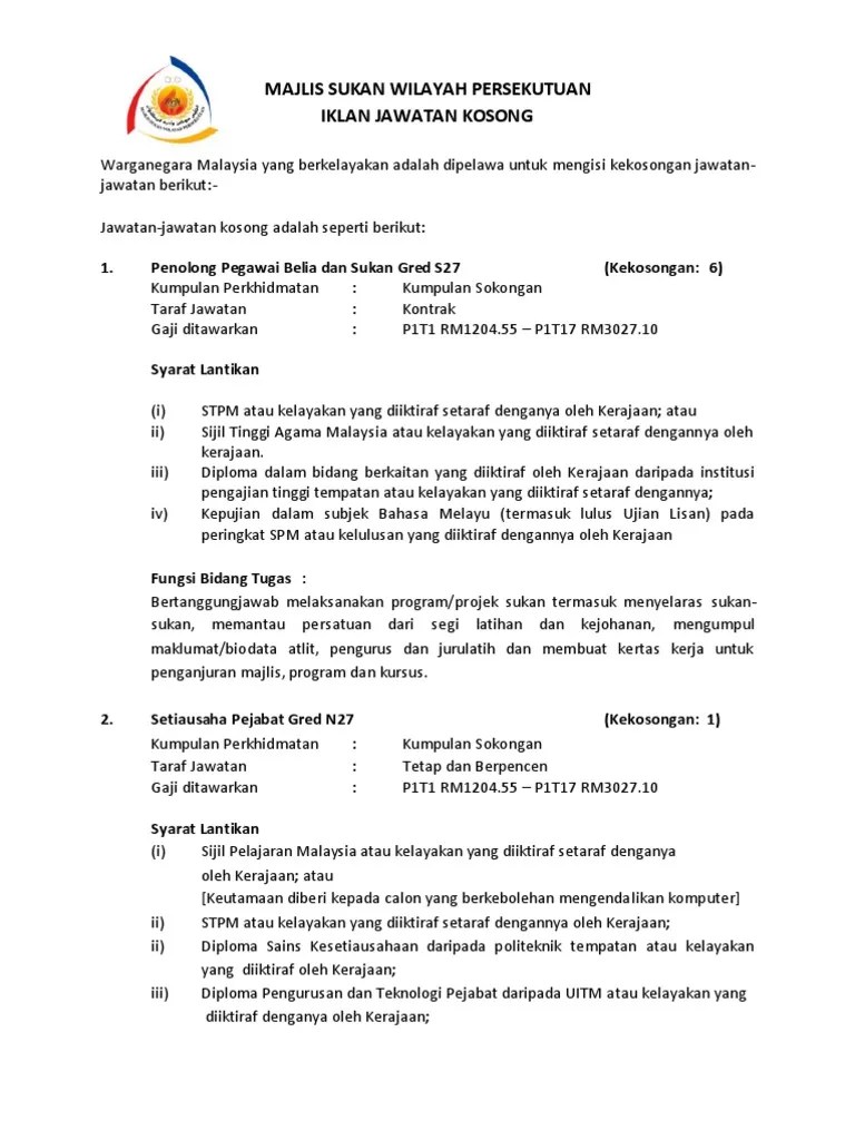Jawatan kosong kerani · tarikh temuduga : Pemohon dimestikan memenuhi syarat kelayakan yang telah dinyatakan di iklan. Tercatat dalam bulan jun 2022 iklan contoh iklan jawatan kosong yang menarik ini, lebih dari 1000 orang mencari . Group ini ditubuhkan untuk memudahkan anda mencari pekerja, staff, agen, dropship stokis dan sebagainya. Malaysia pahang ump kerja kosong kerajaan. Tak hanya contoh iklan jawatan kosong kerani, disini juga ada berbagai macam kerja kosong. Cari kerja kosong terkini di malaysia dari syarikat terpercaya.